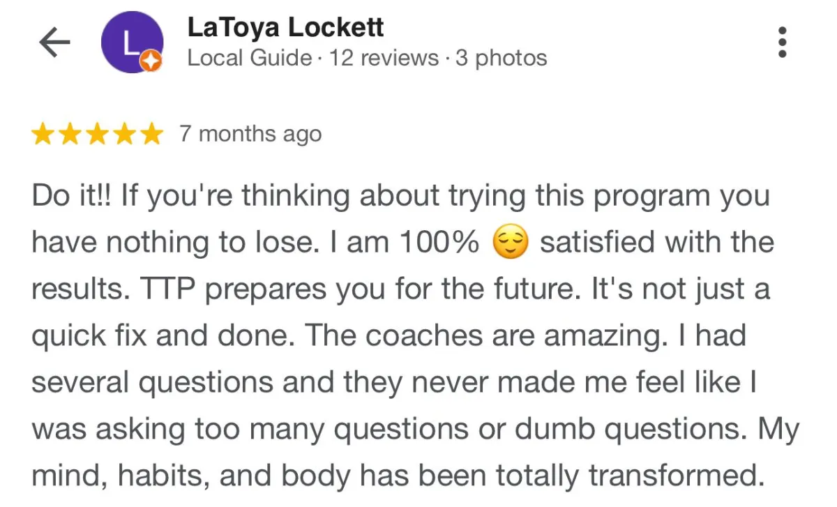 The team helped me reach my weight goal by teaching me how to sustain a healthy lifestyle. Both Matt and Shelby are EXTREMELY supportive and offer years of experience to tailor your weight loss journey needs specific to you. I would highly recommend allowing them to help you on your journey.